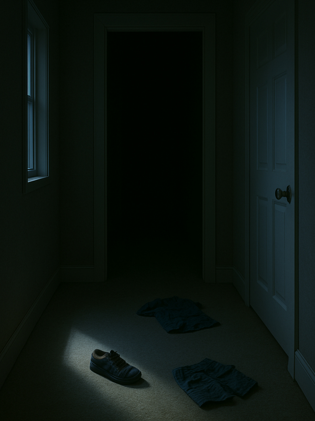 Shadows stretched long down the hallway. I slipped off my clothes, piece by piece, leaving them on a nearby chair like breadcrumbs