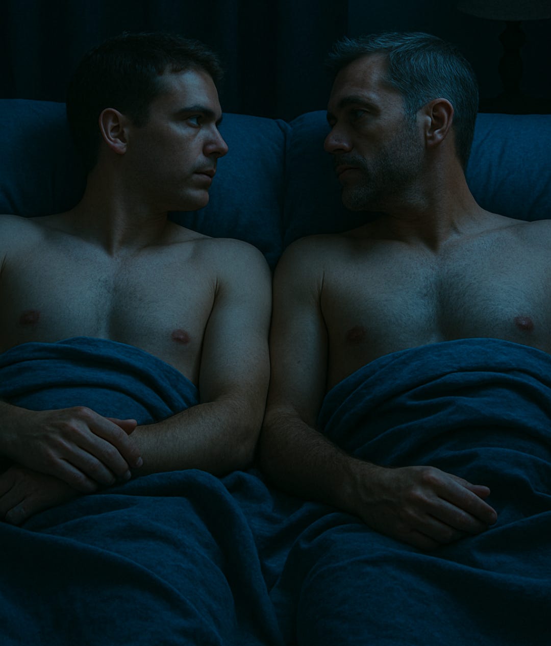 Even in the dark, I could make out the curve of his back, the soft dip of his waist, the rise of his ass under the covers.